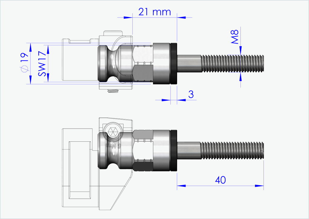Si ha montado el tornillo especial pos. 2 en su puntera izquierda, necesitará además el pos. 5 - casquillo Enviolo estándar | Artículo Enviolo nº: HW-MA-SPCR-LH-OE para el montaje de nuestro adaptador de rosca.