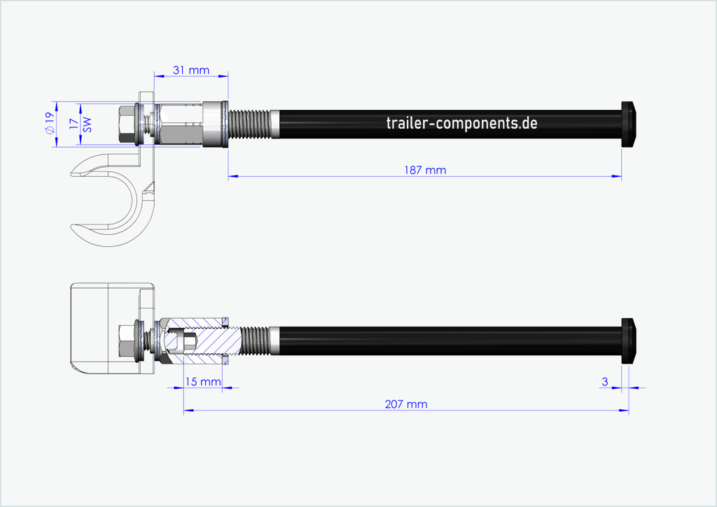 - Es su responsabilidad determinar el tamaño de rosca correcto y la longitud de instalación [mm] de su eje pasante actual en la rueda. No intente montar nuestro eje pasante con adaptador en un tamaño de rosca diferente en el buje de su rueda trasera. Un tamaño de rosca incorrecto puede dañar su bicicleta. Si no está seguro del tamaño de rosca y la longitud de instalación correctos, póngase en contacto con nosotros por correo electrónico o por teléfono y estaremos encantados de ayudarle.
