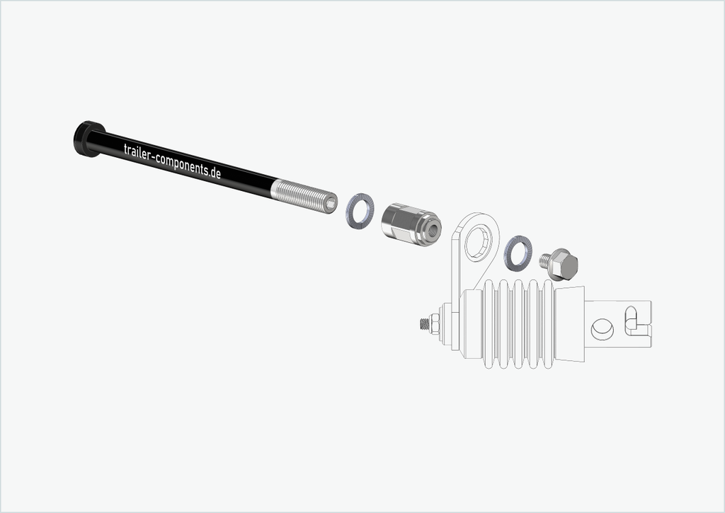 - Es su responsabilidad determinar el tamaño de rosca correcto y la longitud de instalación [mm] de su eje pasante actual en la rueda. No intente montar nuestro eje pasante con adaptador en un tamaño de rosca diferente en el buje de su rueda trasera. Un tamaño de rosca incorrecto puede dañar su bicicleta. Si no está seguro del tamaño de rosca y la longitud de instalación correctos, póngase en contacto con nosotros por correo electrónico o por teléfono y estaremos encantados de ayudarle.