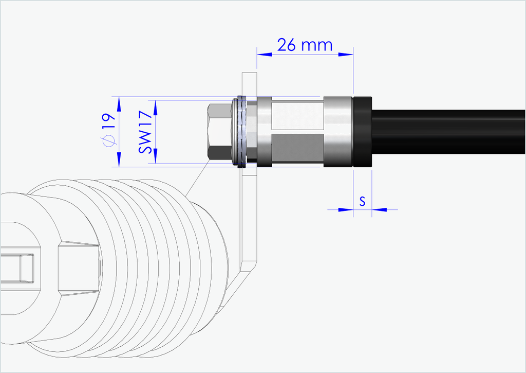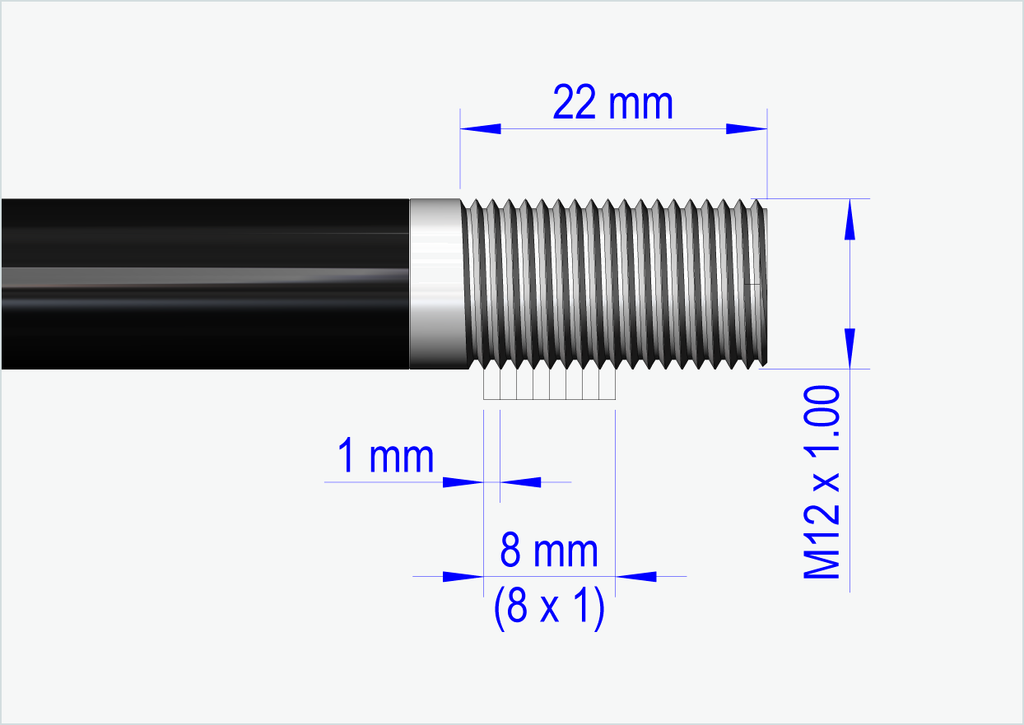 Cada uno de nuestros ejes pasantes se personaliza para usted. Necesitamos la longitud exacta de instalación [mm] y el tamaño de rosca (paso) de su eje pasante instalado actualmente.